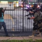 Ferguson olaylari esnasinda polislerle karsi karsiya gelen bir genc – Ferguson, ABD, 11 Agustos 2014 | Fotograf: Whitney Curtis
