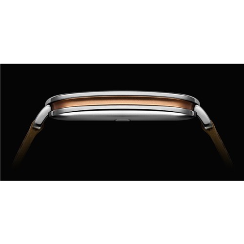 Renk: Gümüş ve kırmızımsı altın renki katmanlar ve kahverengi deri kayışlar