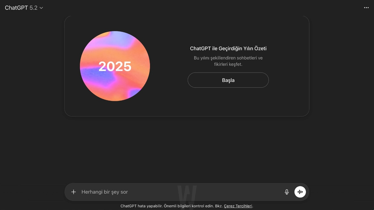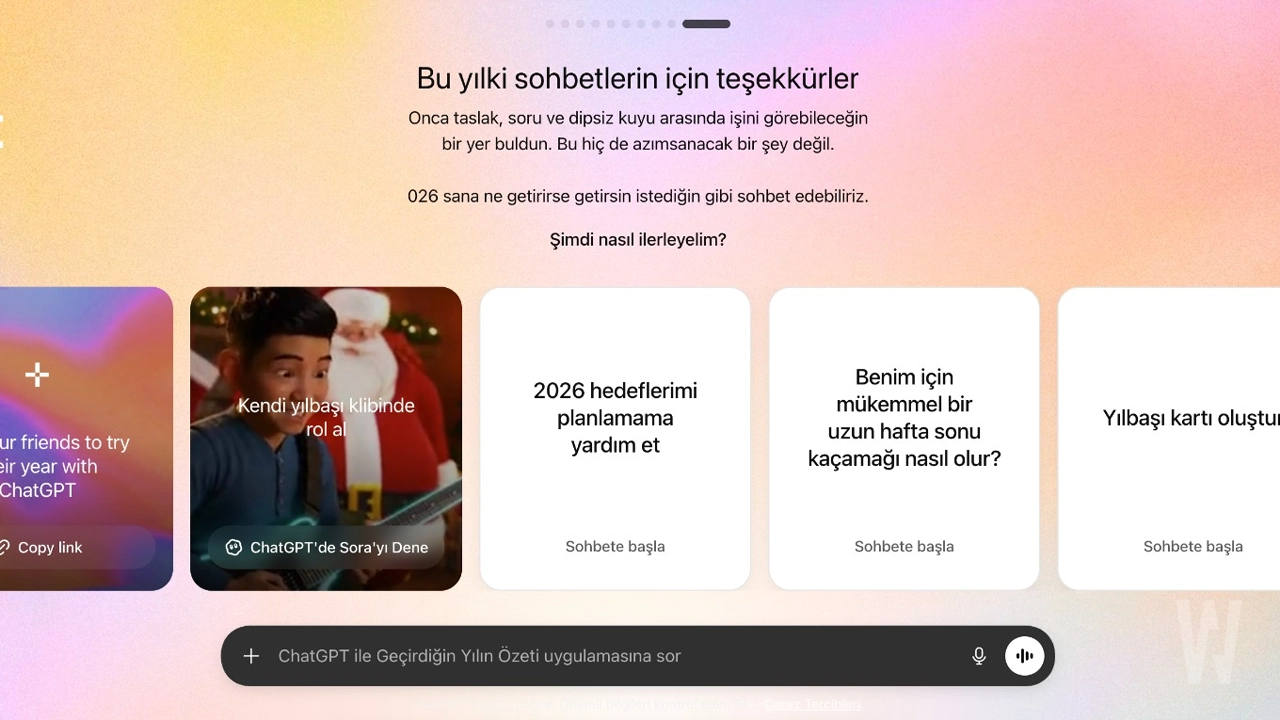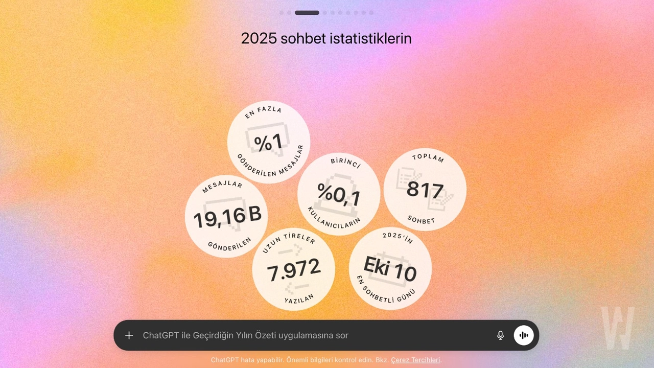 OpenAI’ın duyurduğu yıllık özetler kademeli olarak dağıtılıyor. İlk olarak ABD ve belirli pazarlarda kullanıcılara sunulan özelliğin ilerleyen günlerde Türkiye’ye de gelmesi bekleniyor.