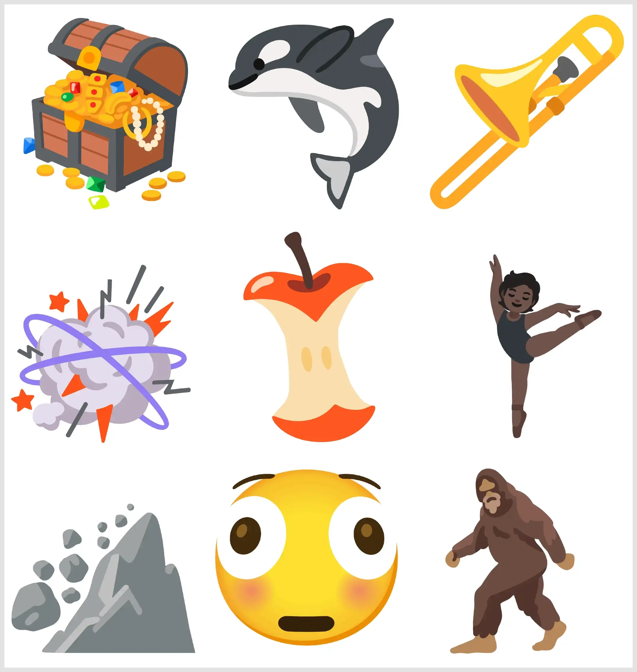- Bu emojiler arasında trombon, hazine sandığı ve elma çekirdeği gibi nesneler karşımıza çıkıyor.