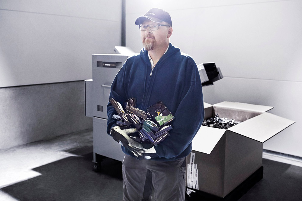 Eskimiş ve kullanılmaz duruma gelmiş sabit diskler imha ediliyor. Bu görev ise Christer Jonsson’a ait.
