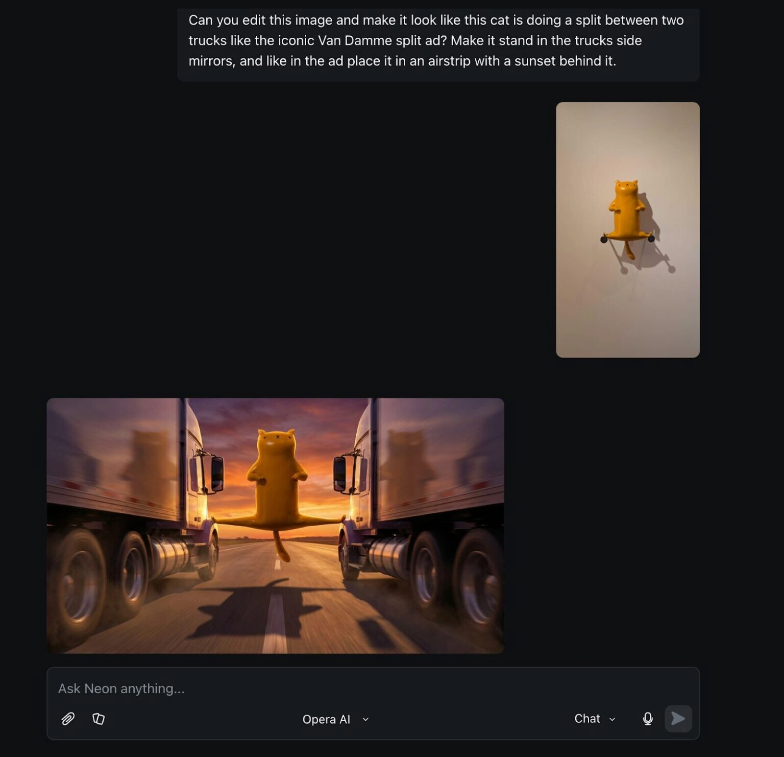 Opera Neon yalnızca sayfaları görüntülemek yerine özel ajanların desteğiyle seyahatleri düzenliyor. Aynı zamanda video hazırlıyor, internet sitesi oluşturuyor, belge düzenliyor ve derinlemesine aramalar gerçekleştiriyor.
