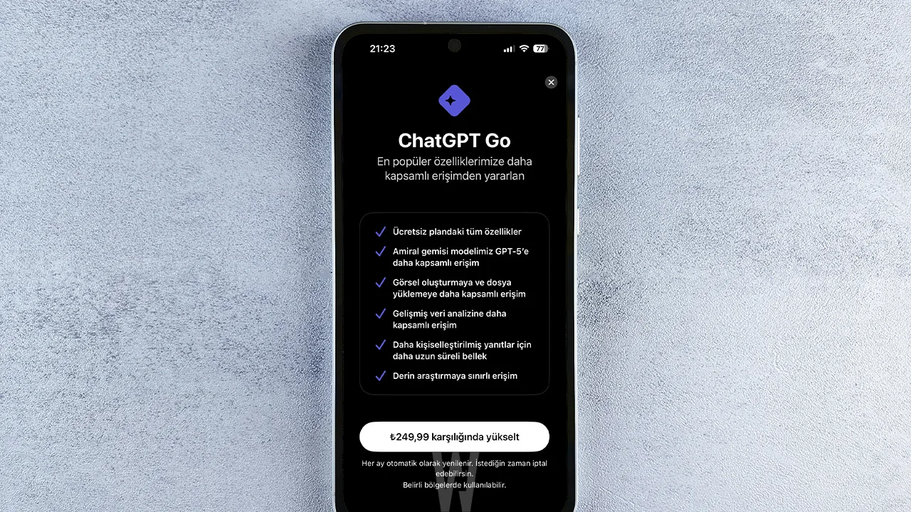 OpenAI, aylık 6 dolarlık fiyatıyla GPT-5 modeline erişim sunan ChatGPT Go paketini Türkiye’de kullanıma açtı. Kullanıcı verilerinin model eğitiminde kullanılabileceği belirtilirken, isteyenlerin bu ayarı kapatabileceği açıklandı. Şirket, Go ve diğer tüm paketler için yıllık abonelik seçeneği sunmadığını, ödemelerin sadece aylık alınacağını duyurdu.