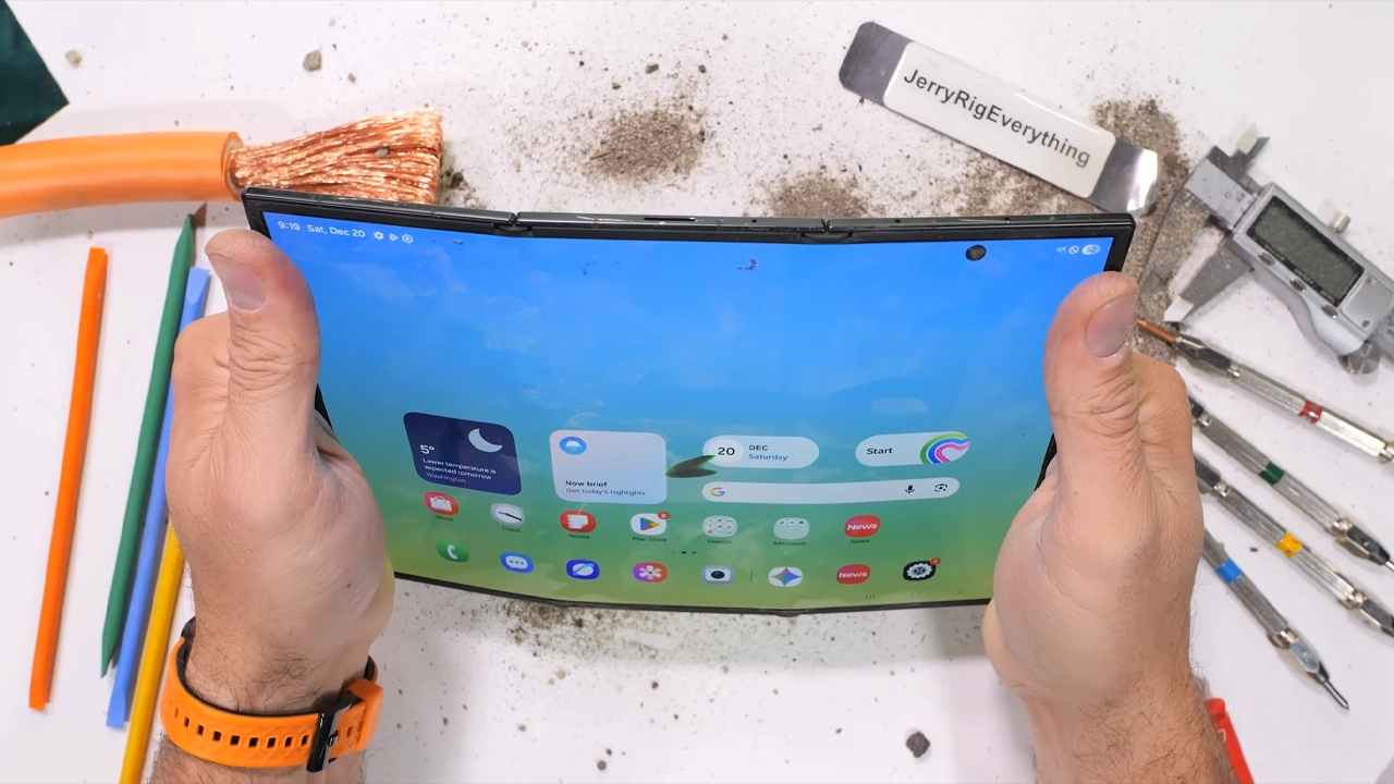 Samsung Galaxy Z TriFold, JerryRigEverything’in zorlu dayanıklılık testinden geçemedi. Cihaz, bükülme testinde yapısal bütünlüğünü koruyamayarak kırıldı. Modelin yalnızca 3.9 mm kalınlığındaki ultra ince tasarımı, ters yönde uygulanan baskıya karşı yeterli direnci sağlayamadı.