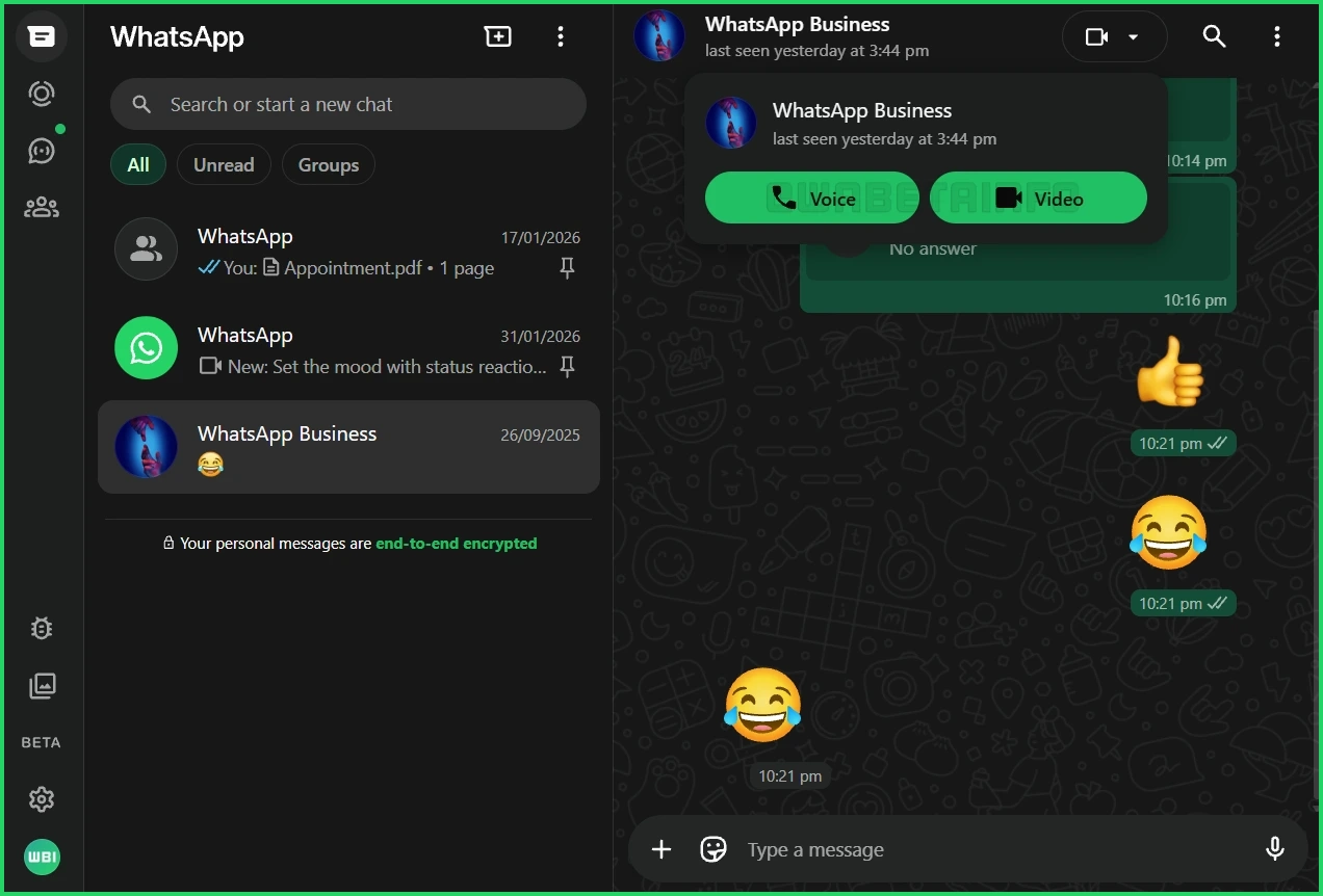 WhatsApp Web çok nihayet Beta programına kayıtlı olan test kullanıcıları için sesli ve görüntülü arama özelliğini sunmaya başladı. Uzun süredir beklenen bu yeni özellik, mobil ve masaüstü uygulamalarına benzer şekilde çalışıyor.