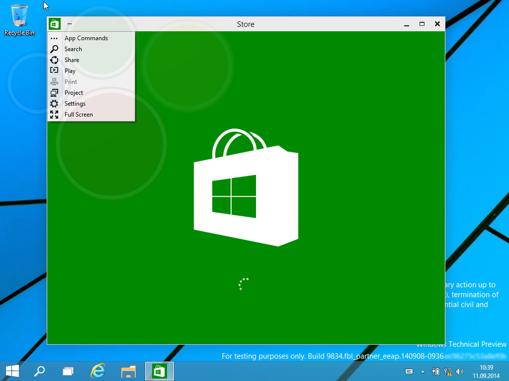 - Görev çubuğuna sabitlenmiş Internet Explorer 11, dosya yöneticisi ve Windows Store uygulamaları